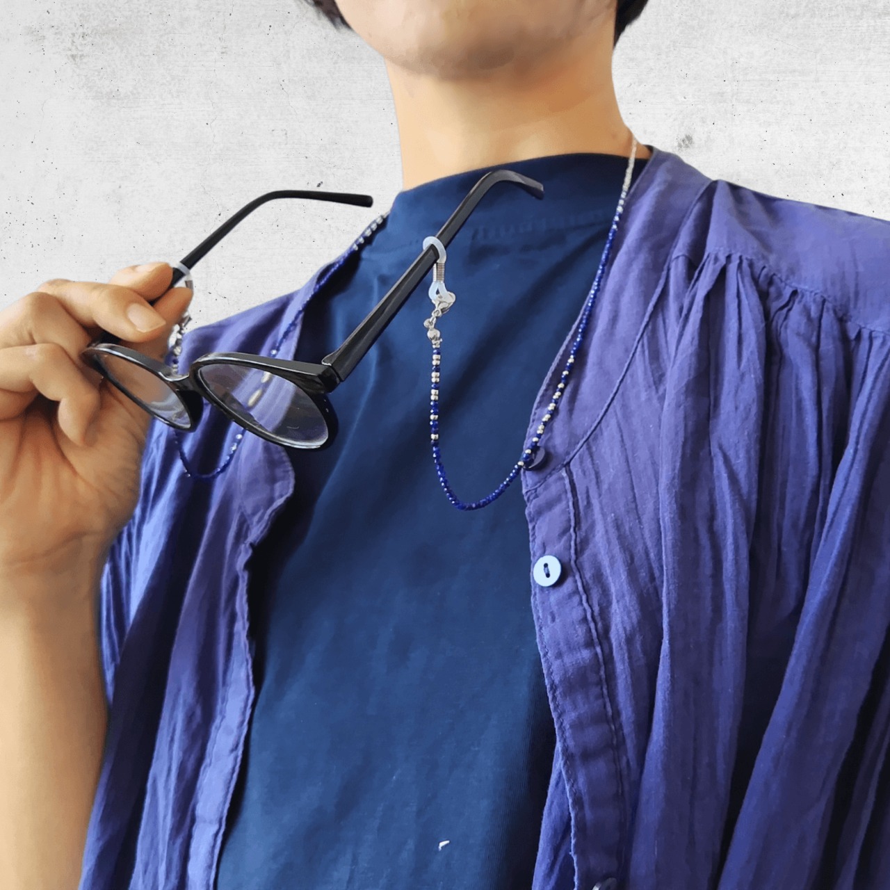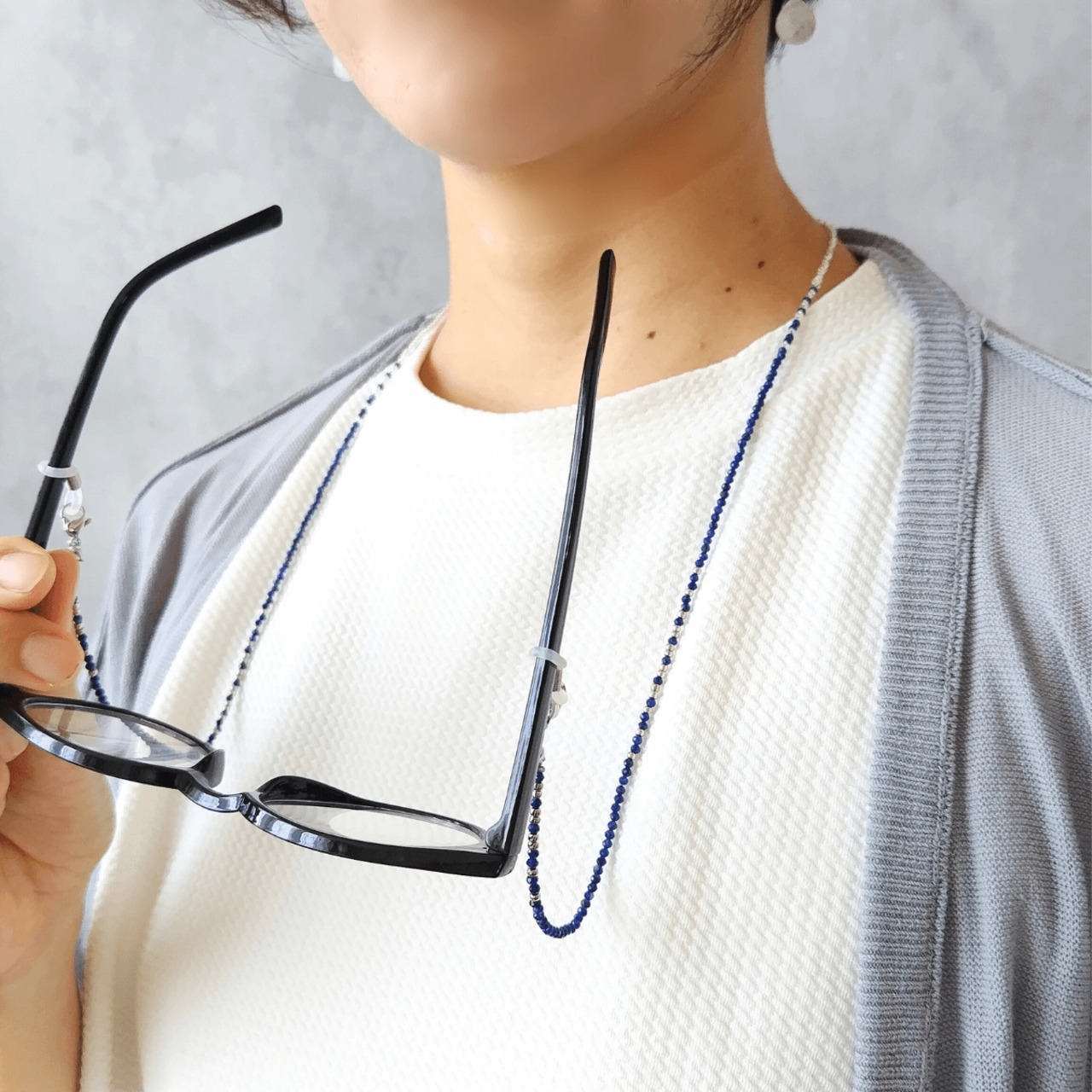 ✓ 外した眼鏡を胸元にかけたままでも、ネックレス風に見えて上品