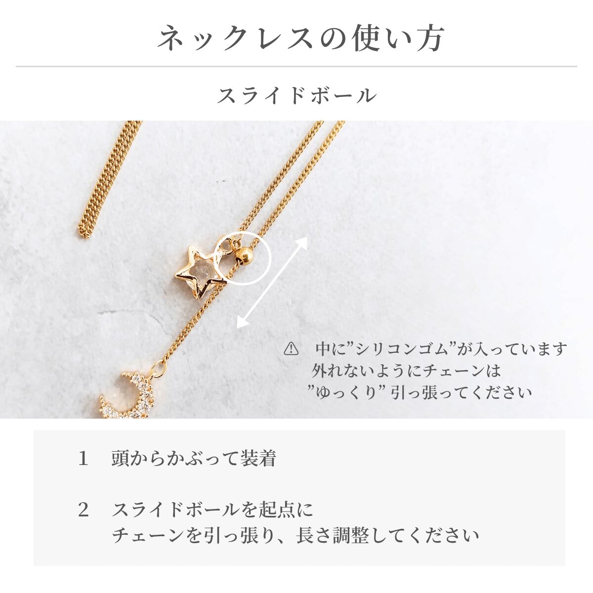 星 三日月 キュービックジルコニア 2way Y字ネックレス ラリエット / ロングネックレス 金属アレルギー対応 長さ調整 アジャスター スライドボール マグネット留め具 ゴールド レディース