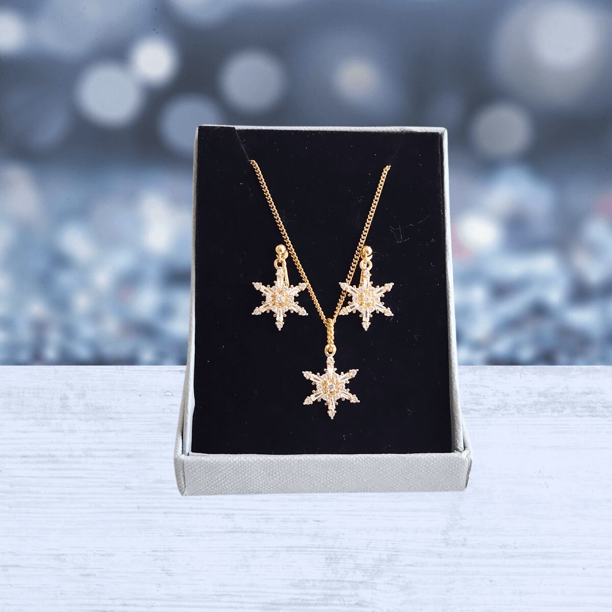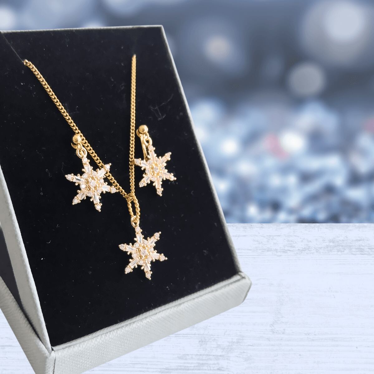 "簡単着脱" セット販売 雪の結晶 キュービックジルコニア マグネット留め具 ネックレス&イヤリング / ピアス 金属アレルギー対応 喜平チェーン シンプル チェーンのみ 長さ調整 アジャスター スライドボール ゴールド 上品 シンプル レディース