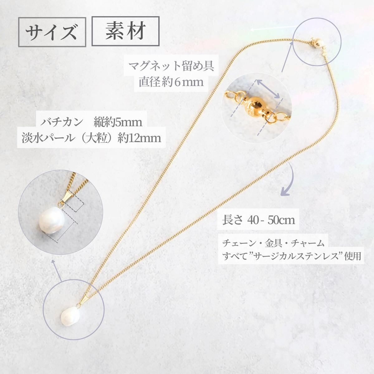 "簡単着脱" セット販売 一粒 淡水パール マグネット留め具ネックレス &イヤリング / ピアス 金属アレルギー ゴールド / シルバー 上品 アジャスター スライドボール 長さ調節