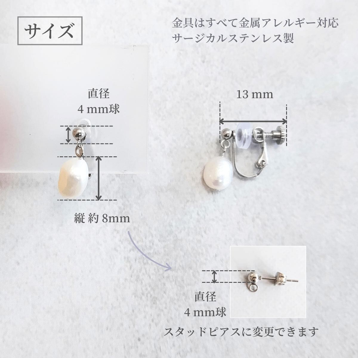 ・ 金具は” 金属アレルギー対応 ”の サージカルステンレス を使用