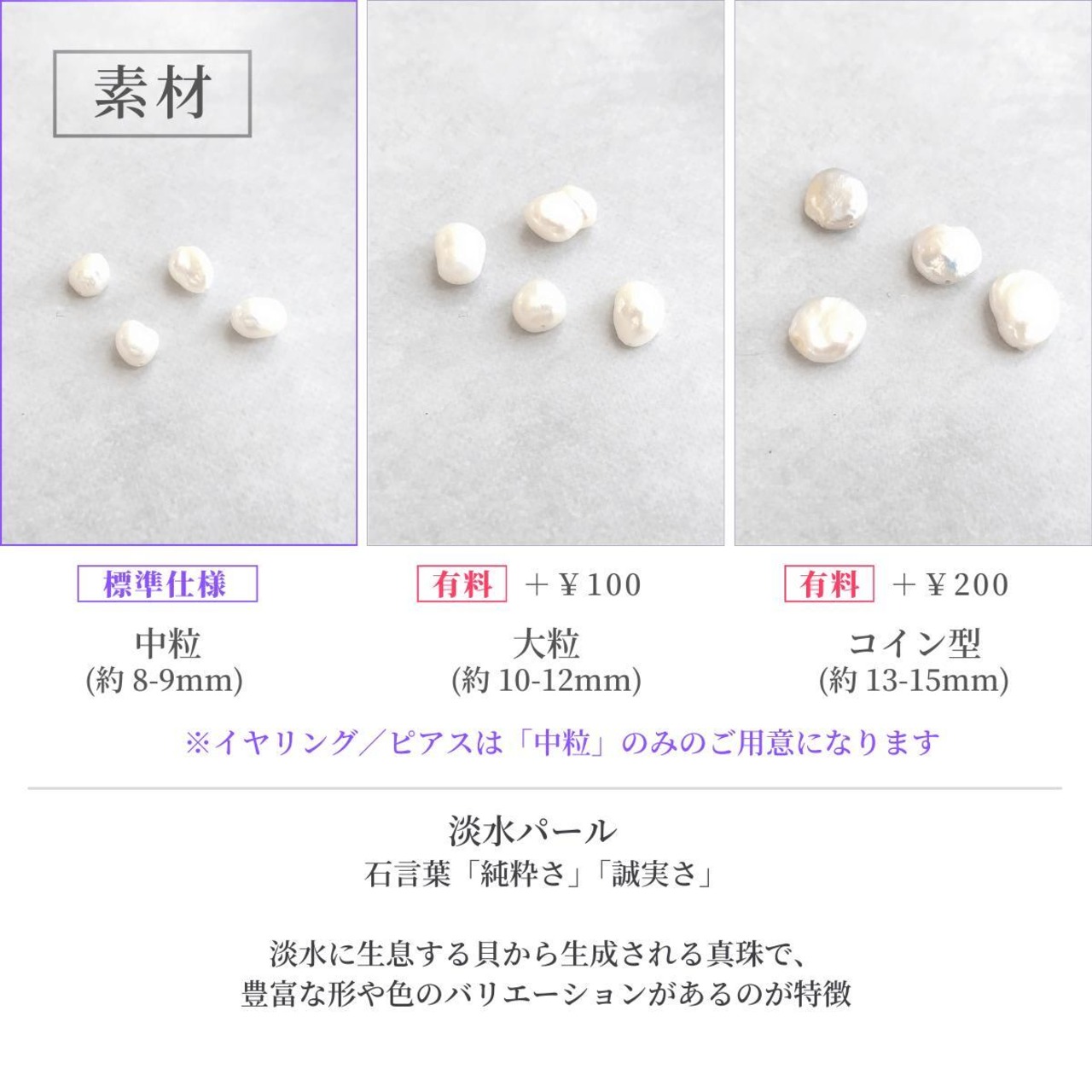 ※イヤリング/ピアスは”中粒”のみのご提供