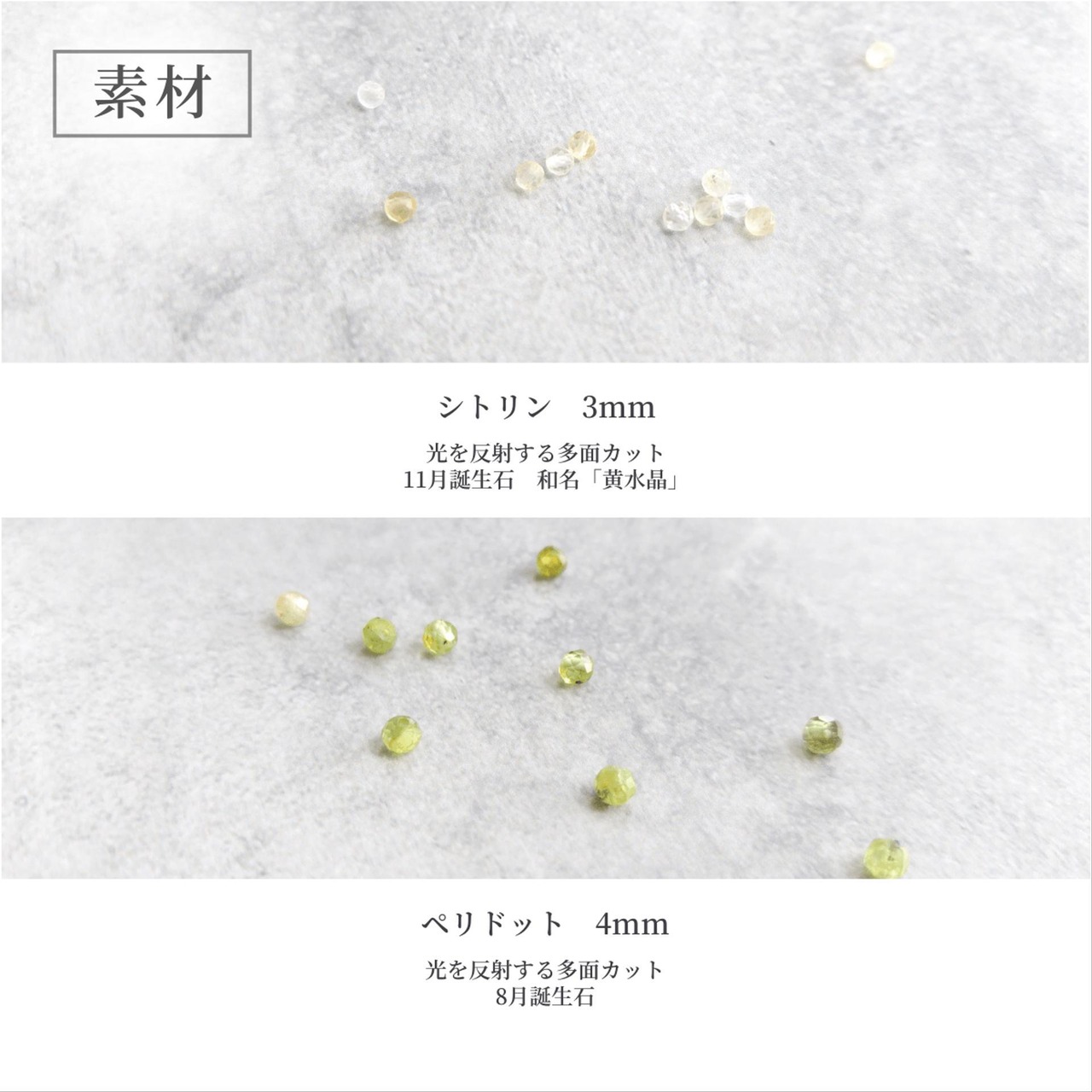4mmの8月誕生石ペリドット(黄緑)の多面カット天然石を使用