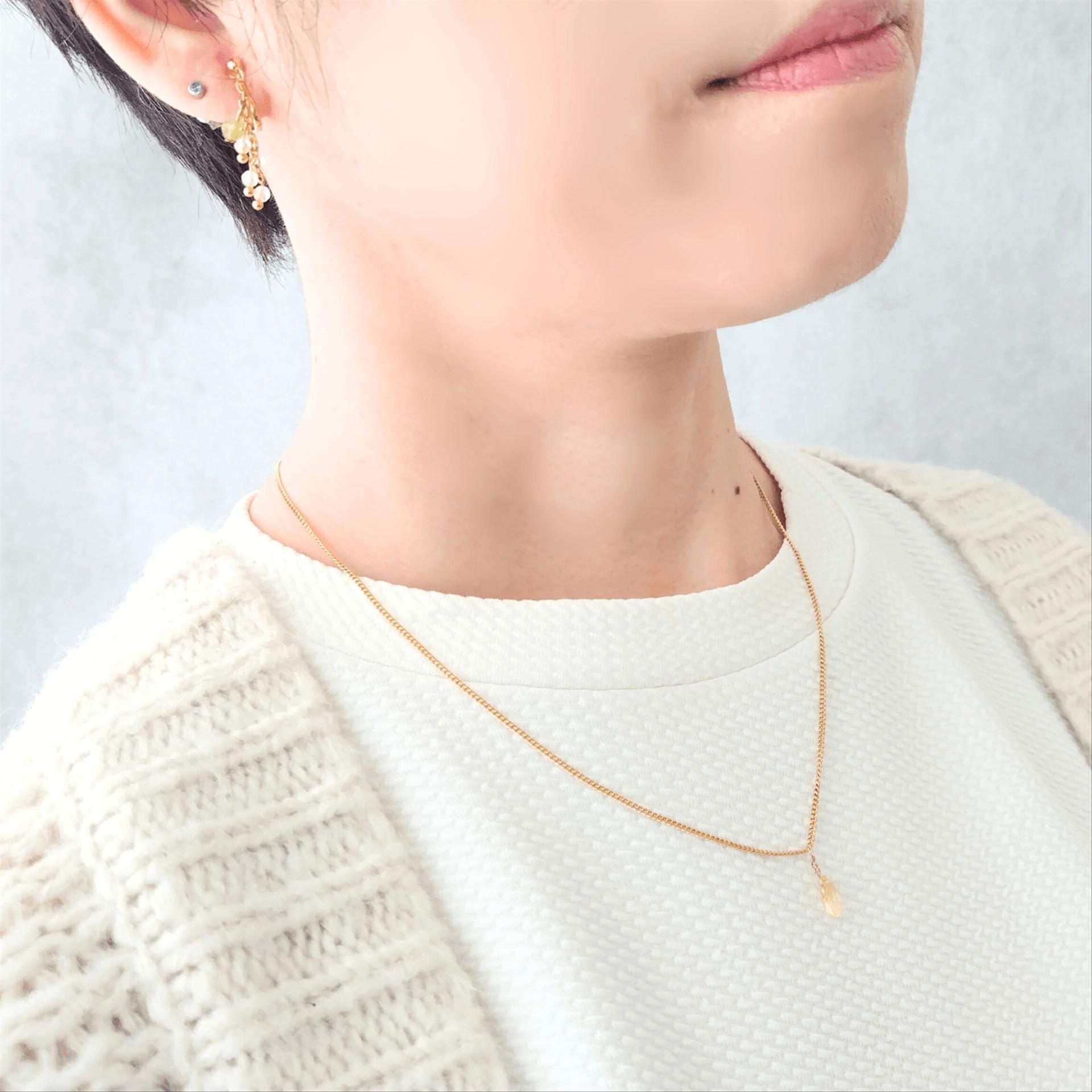 ✓"ミモザ色・天然石シトリン" 一粒ドロップネックレス単品