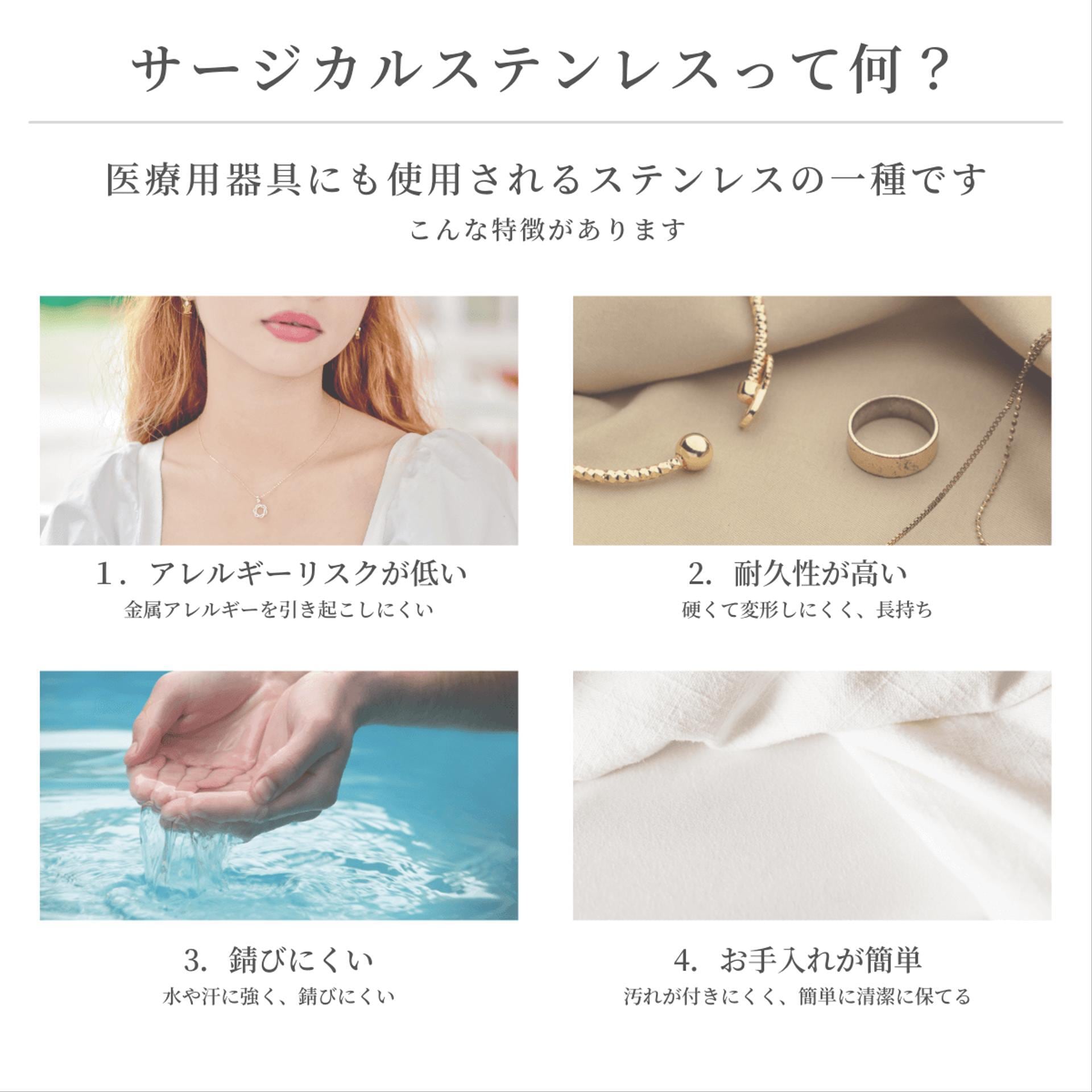 アレルギーを起こしにくく、錆びにくい サージカルステンレス を使用
