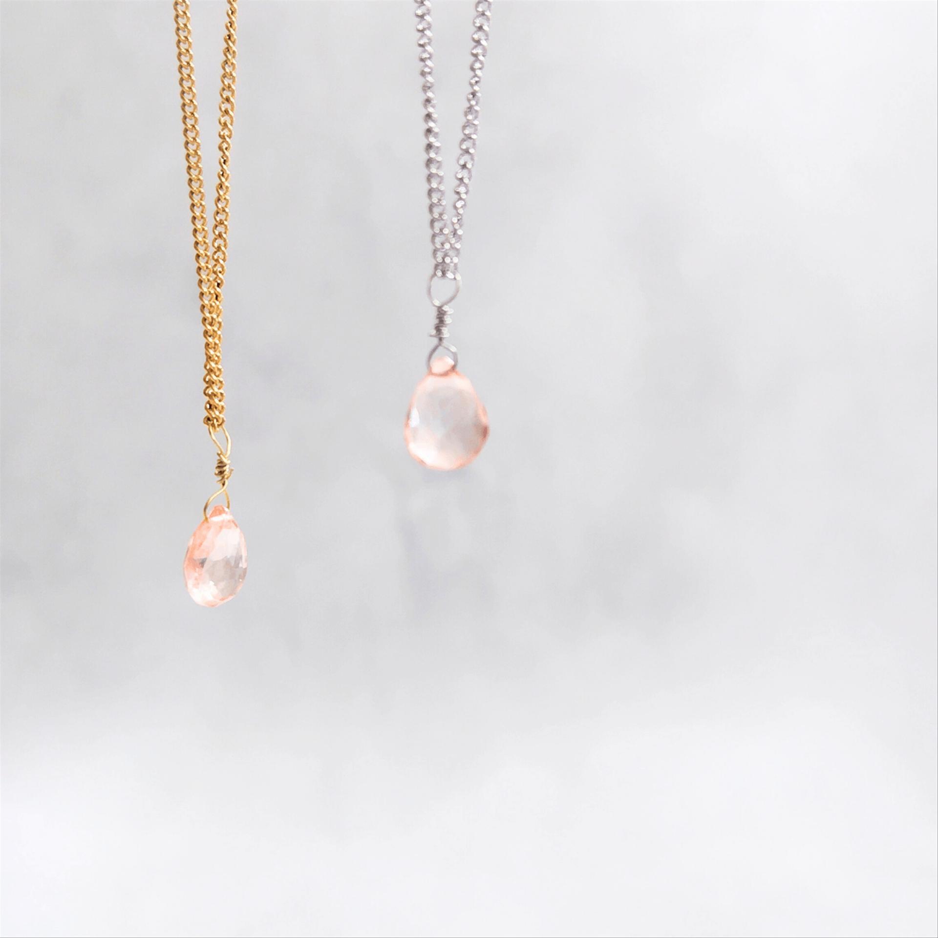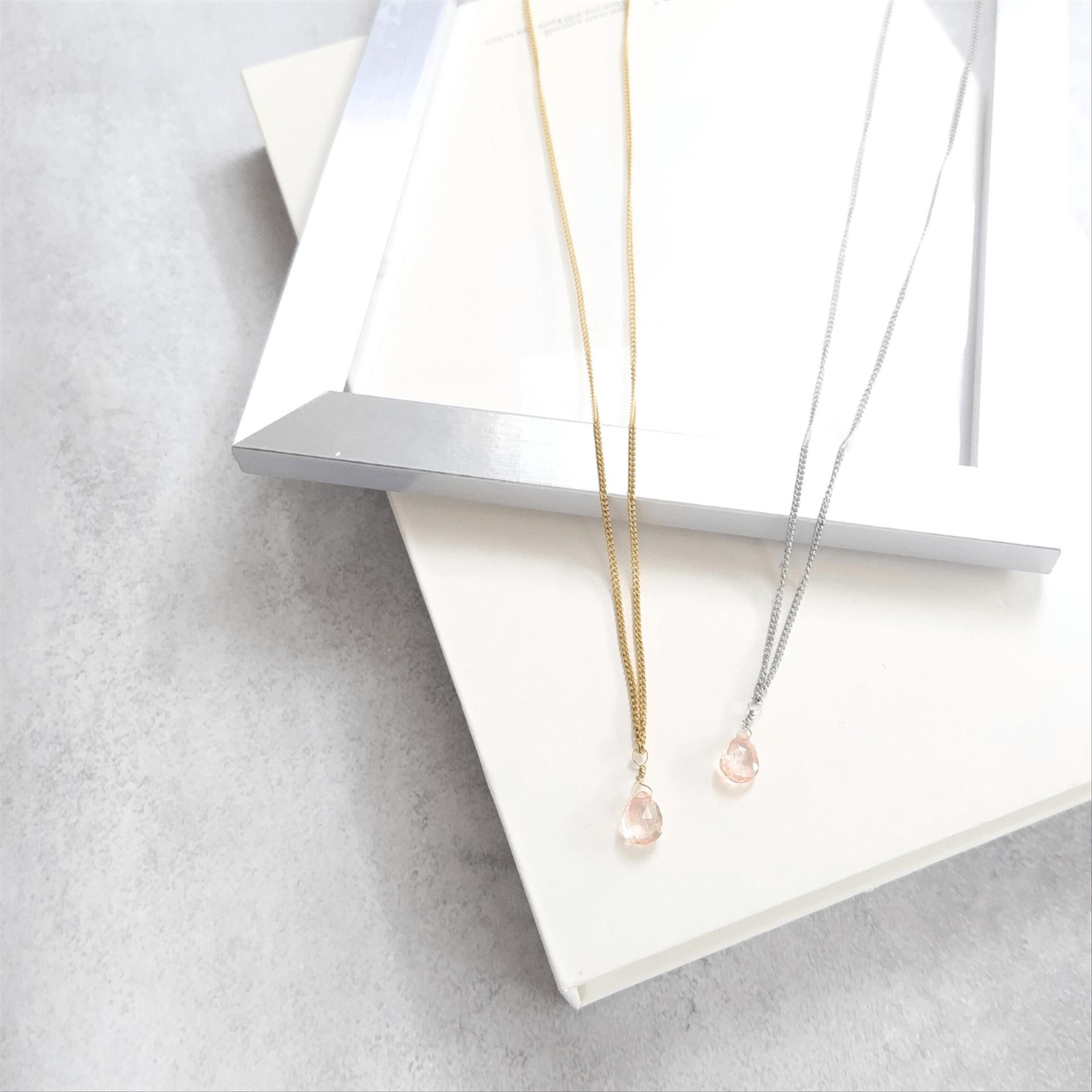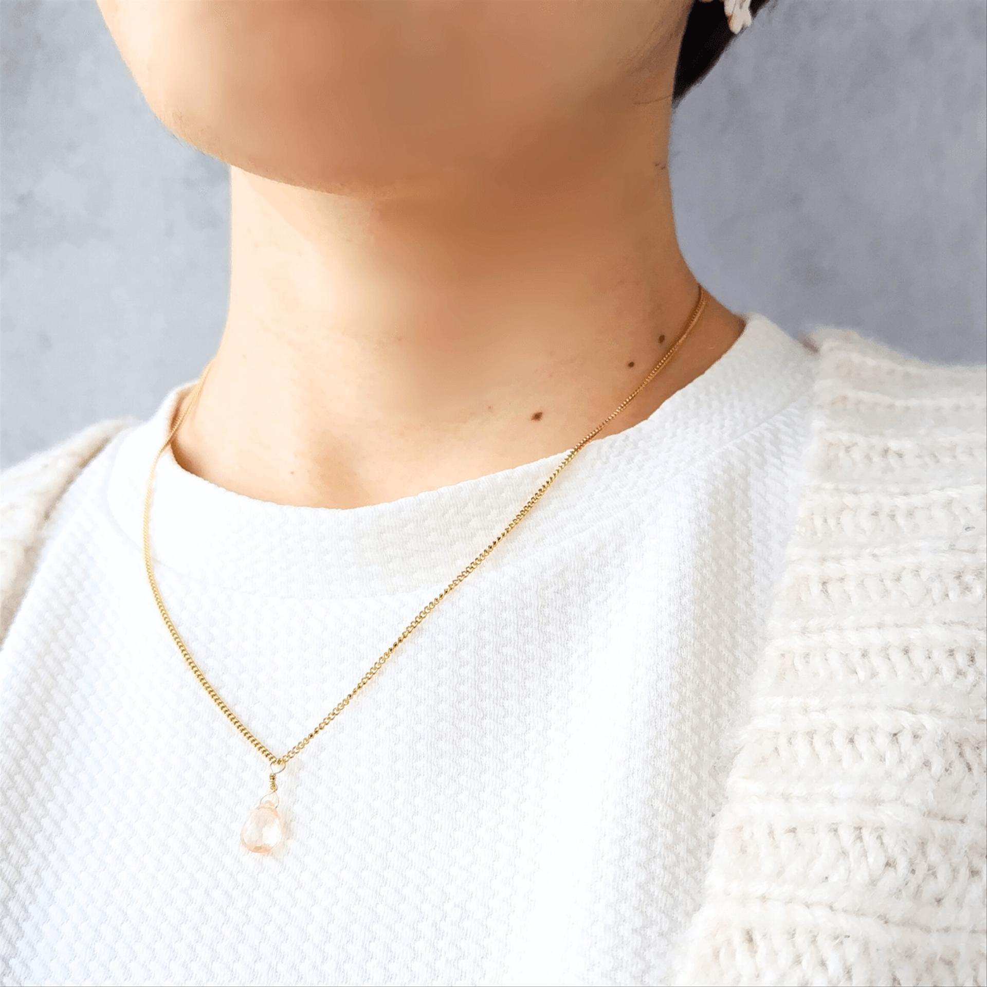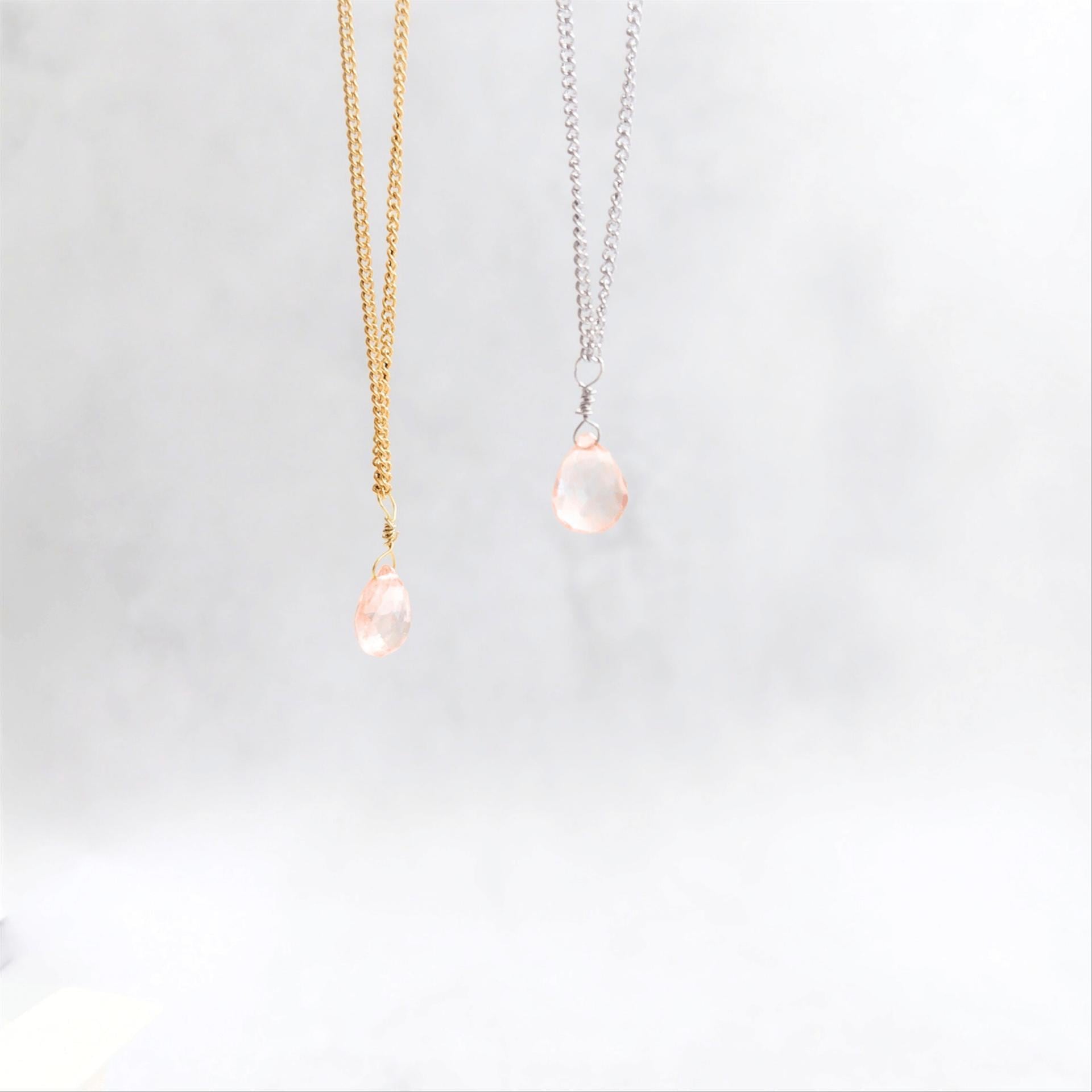 ✓"桜色・天然石ピンクトルマリン" 一粒ドロップネックレス単品