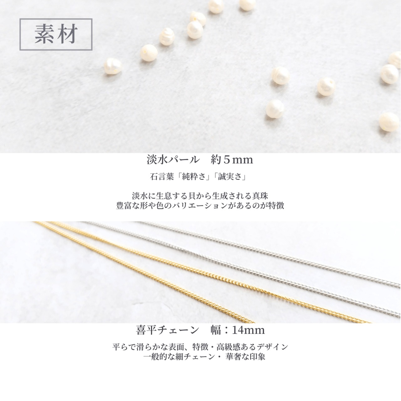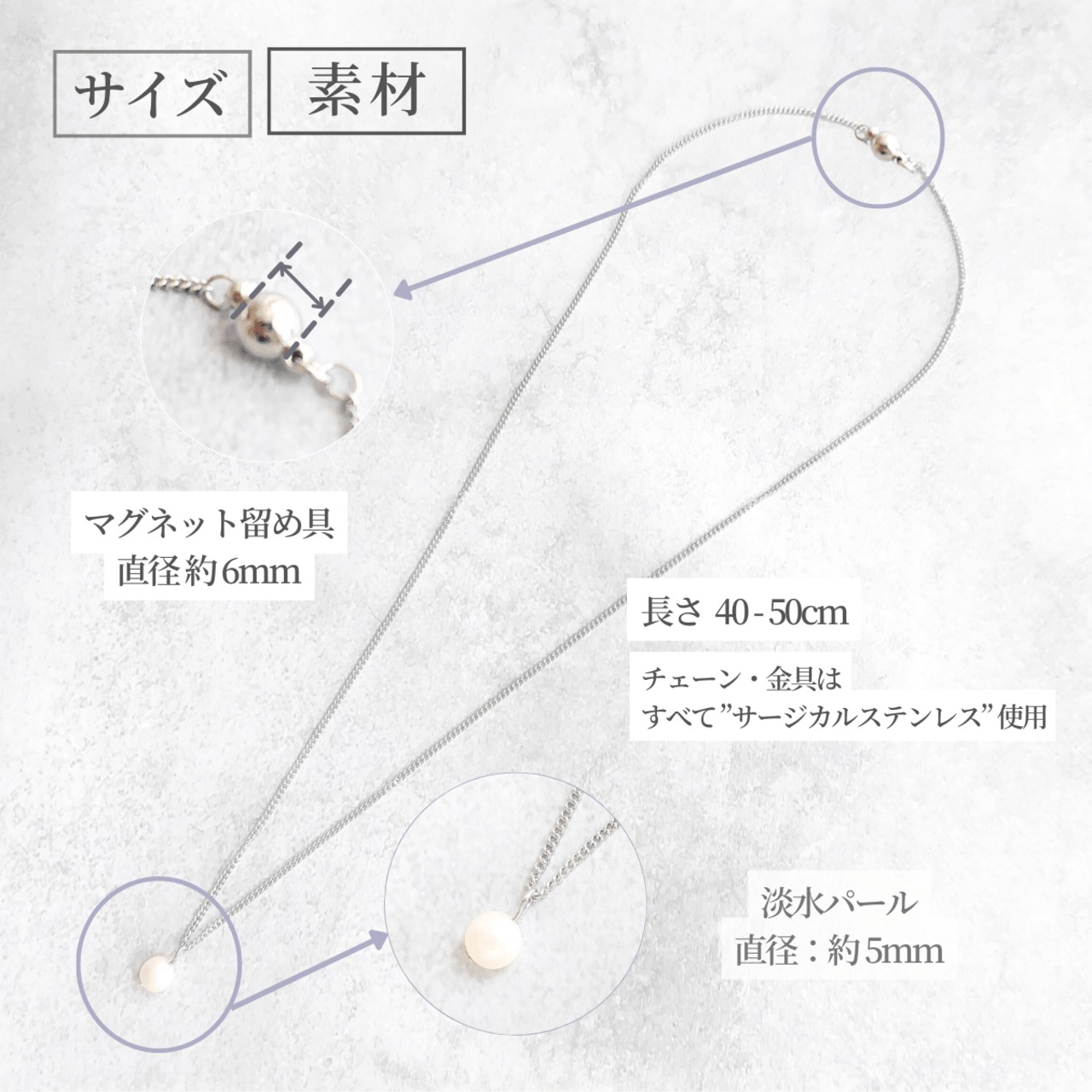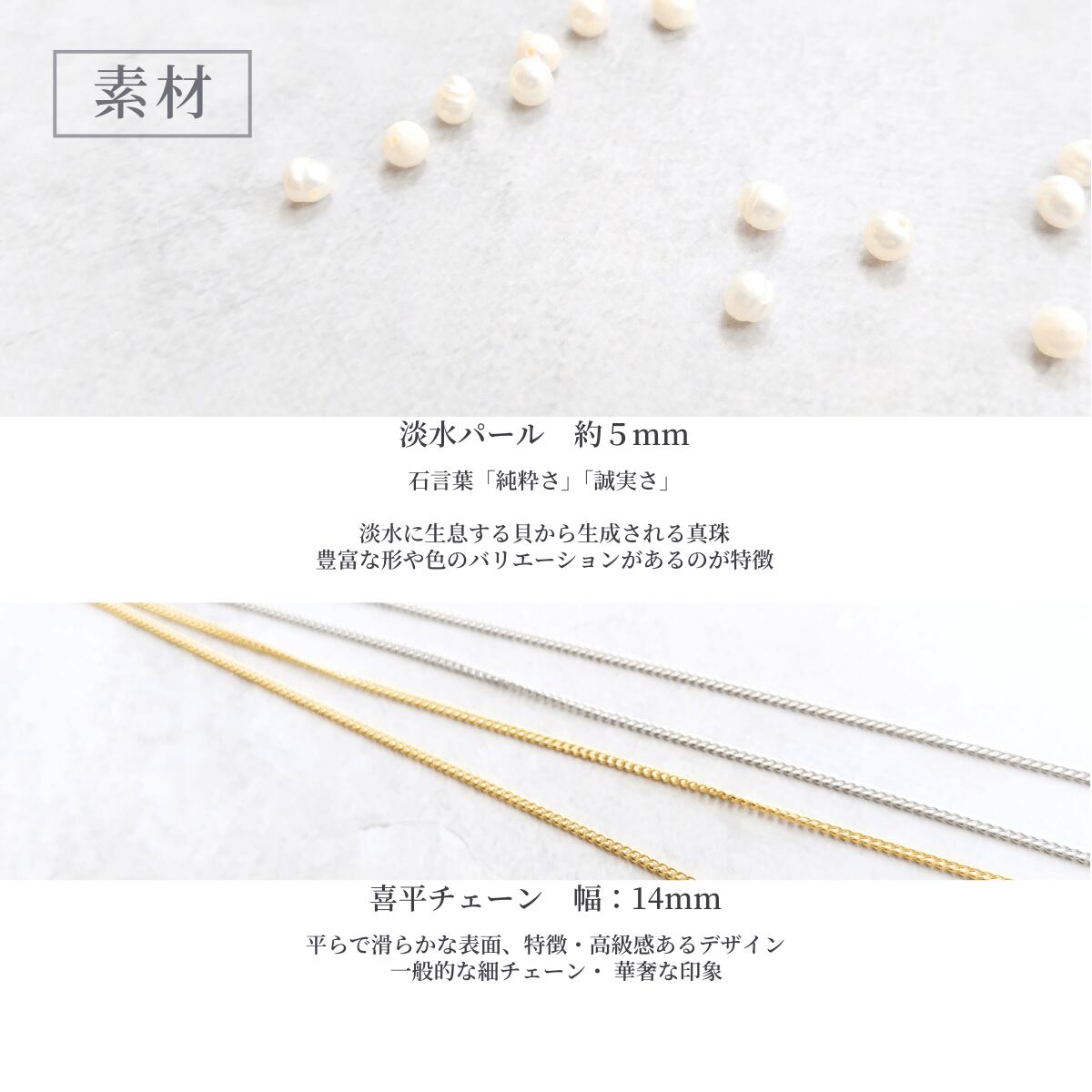 約5mmと小粒でも存在感あるパールです
