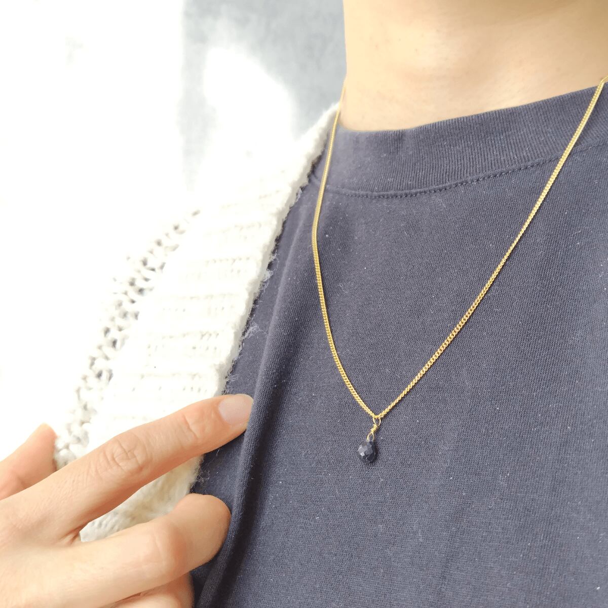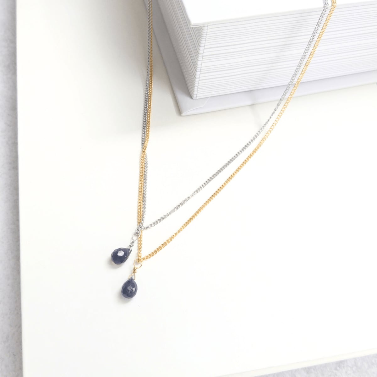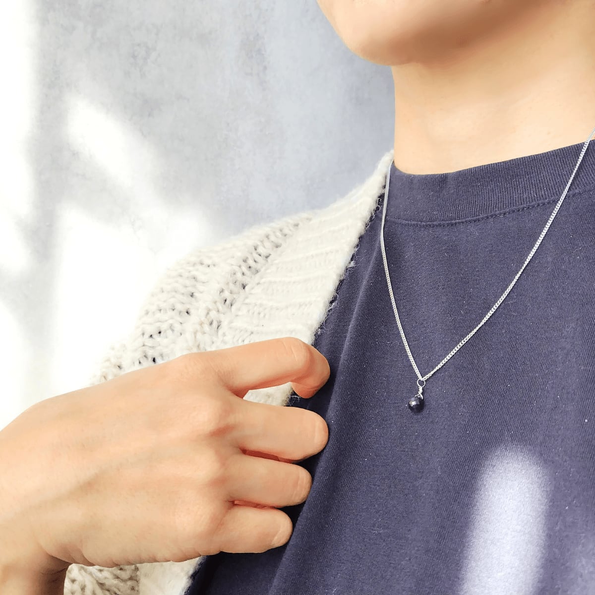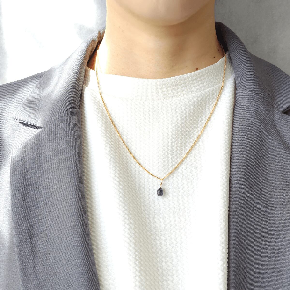 "簡単着脱" 一粒 ドロップ 3月誕生石 アイオライト マグネット留め具ネックレス 金属アレルギー対応 長さ調整 アジャスター スライドボール 青 ゴールド / シルバー 重ね付け 高見え フォーマル 上品 シンプル レディース