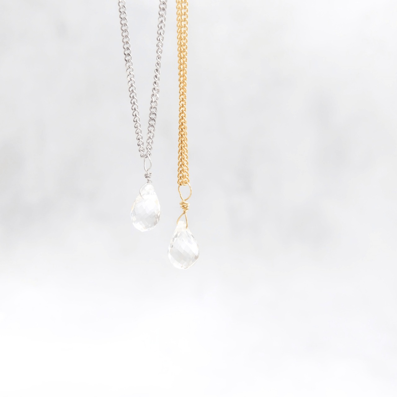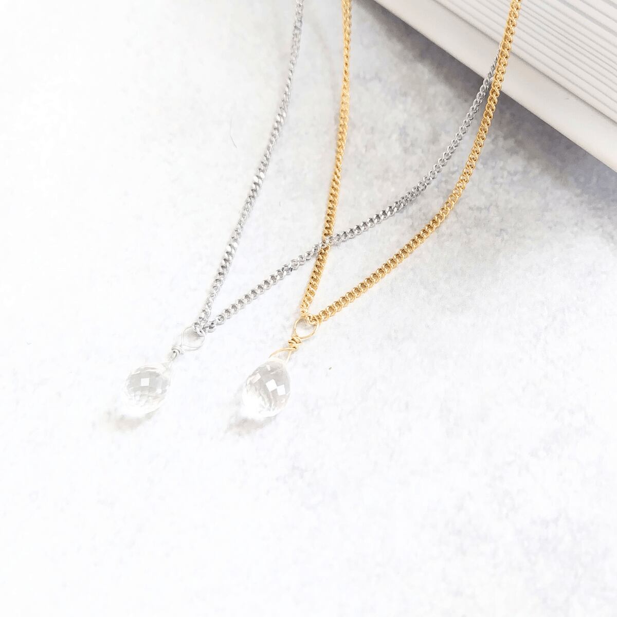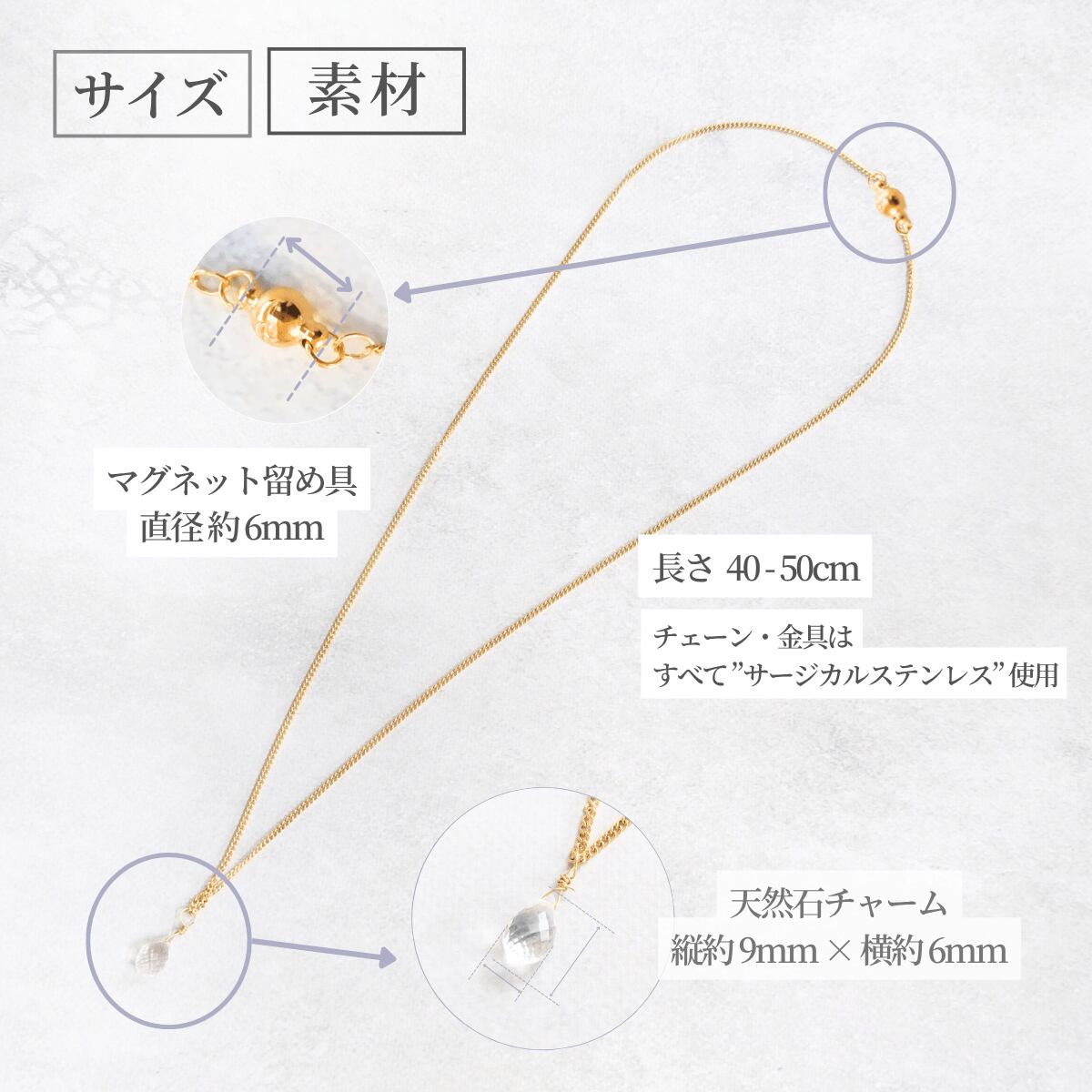"簡単着脱" 一粒 ドロップ 4月誕生石 クォーツ 水晶 マグネット留め具ネックレス 金属アレルギー対応 長さ調整 アジャスター スライドボール 天然石 クリア ゴールド / シルバー 重ね付け 誕生日プレゼント 高見え フォーマル 上品 シンプル レディース